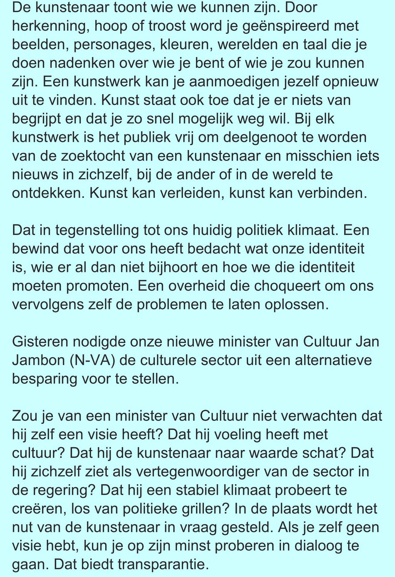 DE WAARDE VAN DE KUNSTENAAR